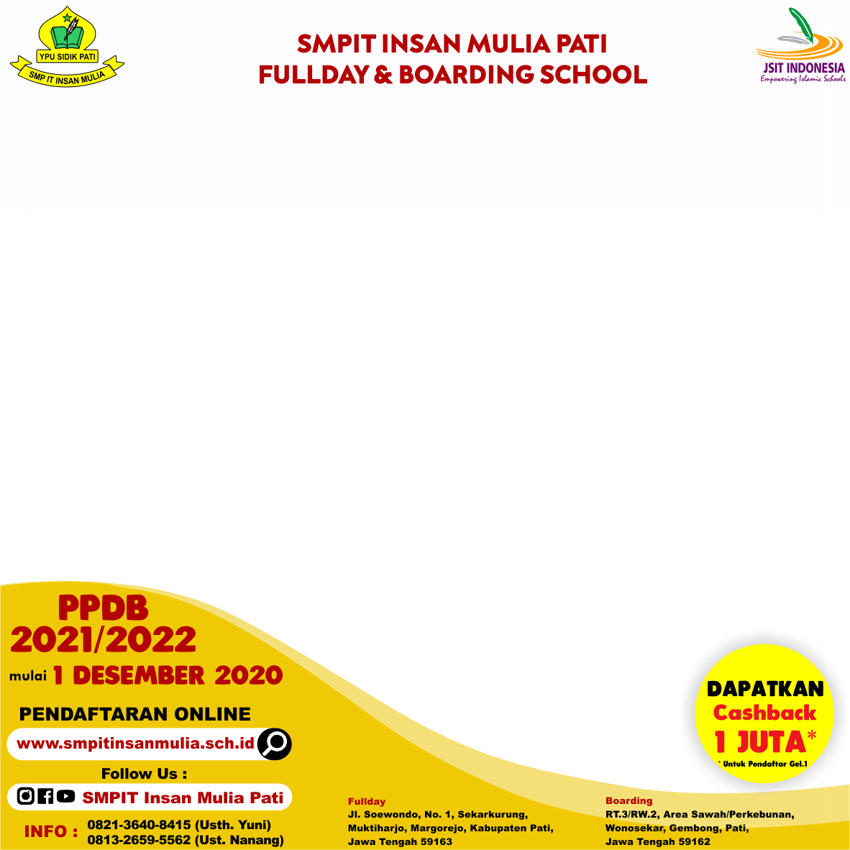 Download Twibbon PPDB Pendaftaran Peserta Didik Baru Madrasah Aliyah IBNU SINA dan Madrasah Tsanawiyah IBNU SINA TA. Format CorelDraw CDR klik sini. Tampilan Frame saat diunggah Ke Twibbonize.
