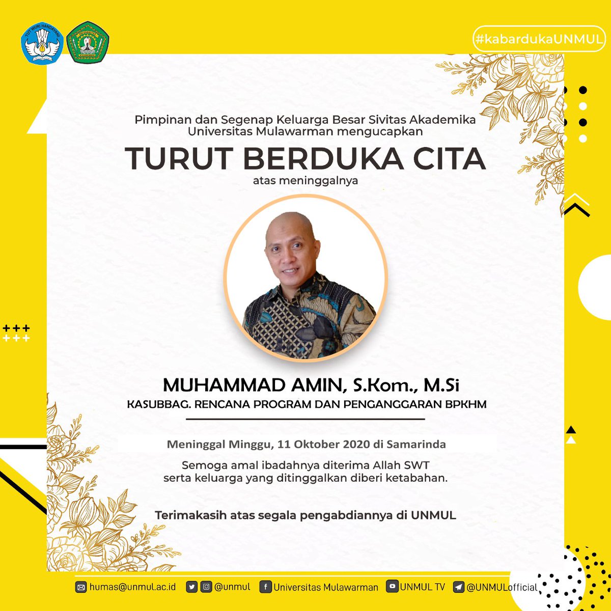 Univ Mulawarman En Twitter إ ن ا ل ل ه و إ ن ا إ ل ي ه ر اج ع و ن Pimpinan Dan Keluarga Besar Unmul Menghaturkan Belasungkawa Dan Turut Berduka Cita Sedalam Dalamnya Atas Berpulangnya Muhammad Amin S Kom Https T Co M46bphlx4f Kasubbag